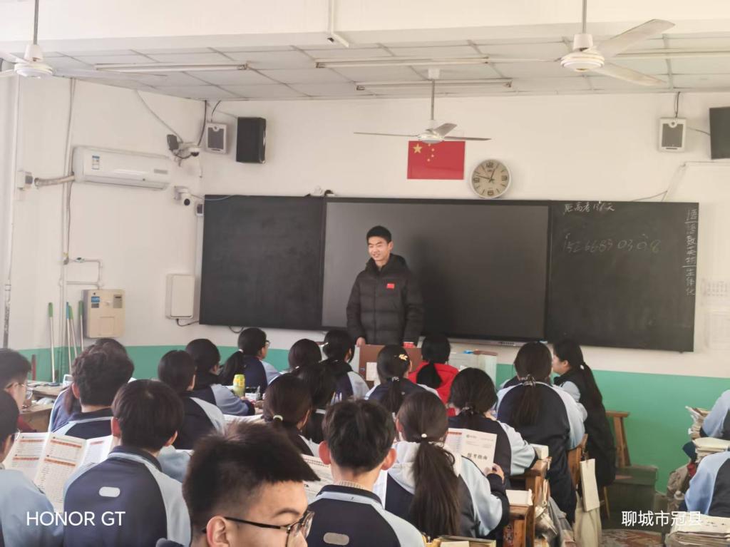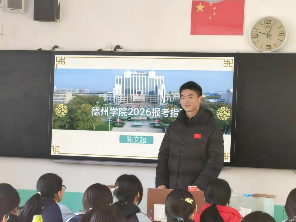 英国正版365首页2025级生物制药本科班学生陈文超,毕业于聊城市冠县第一中学。寒假期间,他回到高中母校,开展“把德院带回高中母校”社会实践宣讲活动,以青春之力搭建母校与高校的沟通桥梁。