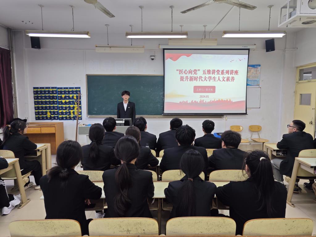 为贯彻落实习近平新时代中国特色社会主义思想,践行社会主义核心价值观,增强新时代大学生人文素养。2024年1月2日,医药与护理学院开展了“医心向党”五维讲堂系列讲座之提升新时代大学生人文素养专题讲座。学生党员代表张兴斌同志主讲,第一学生党支部全体党员参加。