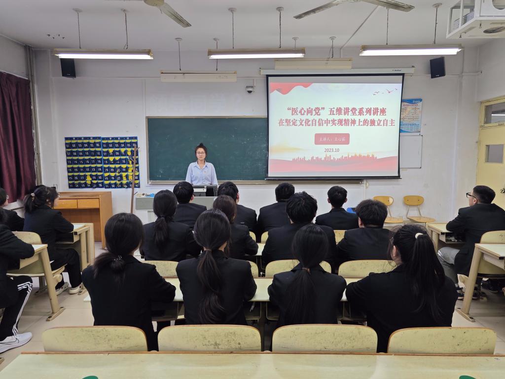 为进一步增强学生党员的文化自信,加强党员干部的独立自主精神,医药与护理学院于2023年10月17日开展了“医心向党”五维讲堂系列讲座之在坚定文化自信中实现精神上的独立自主。学生党员代表王心茹主讲,第一学生党支部全体党员参加。