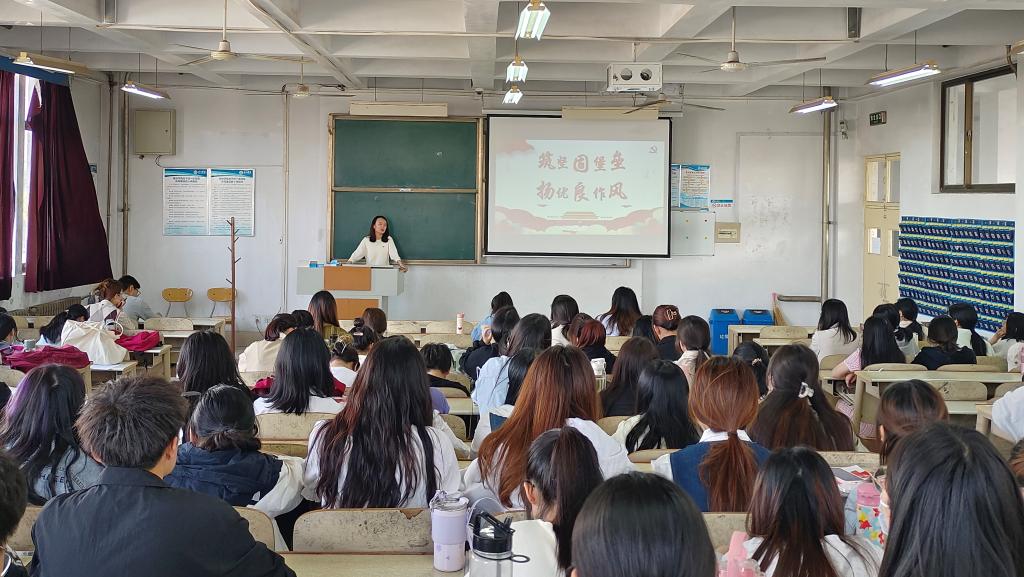 2023年4月18日下午,医药与护理学院第35期入党积极分子培训班在体育楼414教室持续开讲,医药与护理学院党委副书记孙晨晨以《筑坚固堡垒,扬优良作风》为主题给全体入党积极分子讲述了一场生动的党课。