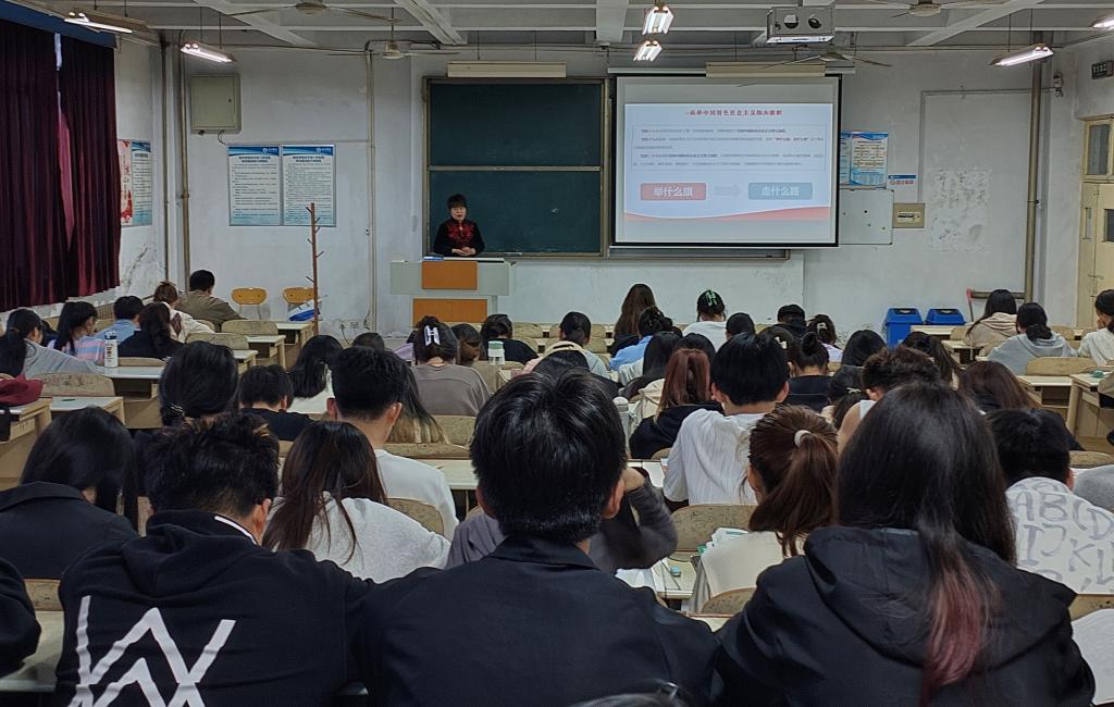滕学芹老师从“举什么旗、走什么路”、中国特色社会主义所处阶段、构成和总依据、总布局、总任务四个方面向积极分子详细介绍了符合中国国情的中国特色社会主义。通过学习,同学们更加深刻地领悟到新时代青年必须牢牢把握五个重大原则:坚持和加强党的全面领导;坚持中国特色社会主义道路;坚持以人民为中心的发展思想;坚持深化改革开放;坚持发扬斗争精神。