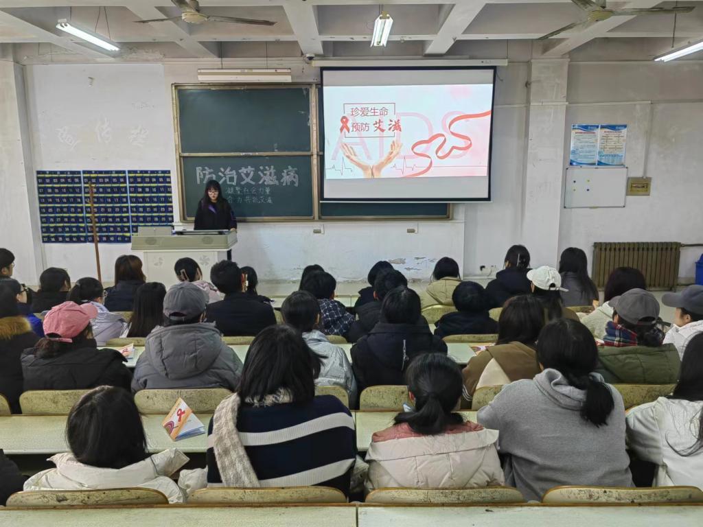 为进一步提高同学们的艾滋病预防意识,提升防艾知识普及度,推动艾滋病防治进一步有效落实,医药与护理学院第一学生党支部联合青春健康同伴社于12月1日下午在体育楼401教室开展“珍爱生命,预防艾滋”健康教育主题讲座。